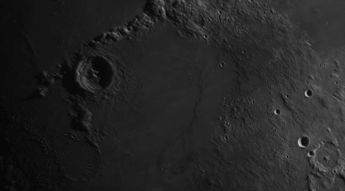 gyűrűs krátert rejt. Az Imbrium-esemény (becsapódás) és az utána következő heves vulkanizmus teljesen eltüntette az eredeti formát ,a krátert betemette és feltöltötte. Az évmilliók azonban felfedték a mélyben rejlő objektumot. A gravitáció az amely a nehéz kőzeteket a tömegközéppont felé húzza ,ez az az erő amely a süllyedő kőzetekben kirajzolja a kráter peremét ahol a bazalt mennyisége kevesebb volt mint a kráter közepén. Ha a peremén kevesebb a bazalt kőzetek mennyisége akkor a tömeg is kisebb így a gravitáció csak kis mértékben hat rá. Ezt a peremet amely egy torz gyűrű, általában lávagerincként kerül azonosításra amely igazából nem lávagerinc. Ez a gyűrű lényegében az eredeti kráter sánca amely kevésbé süllyedt meg ,míg a körülötte fekvő területek pedig jobban.