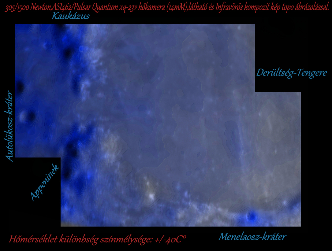 A legfelső képet 200/1000 Newton távcsővel, EQ5 mechanikán,QHY5 ccd-vel és GSO 3X barlow-val készült.A többi 305/1500 Newton távcsővel,EQ6R mechanikán,ASI178MC kamerával,GSO 2X Barlow nyújtóval készült.A hőkép elkészülte az a képre rá írtam.