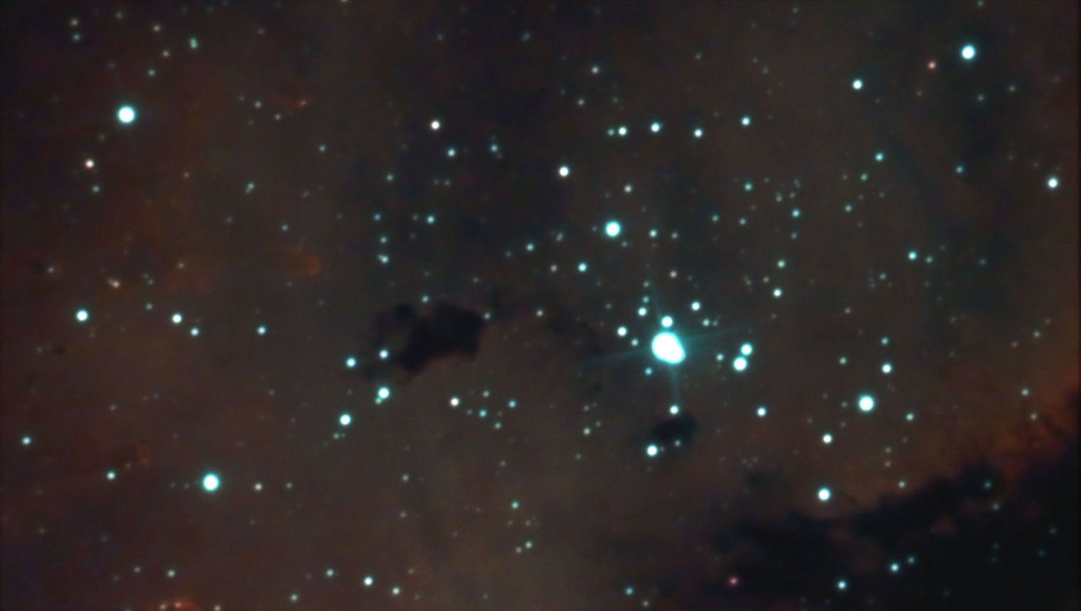 A felvételt 305/1500 SkyWatcher Newton távcsővel,EQ6 Syntrek mechanikán,ASI715MC/hh kamerával,ZWO Duoband szűrővel,StarAid Revolution távcsőrobottal készítettem, 105/500 SkyWatcher refraktort használva a vezetéshez.Sajnos az erősen változó idő miatt csak 15db.1perces felvételt tudtam felhasználni.Szűrő nélkül nagyon nehezen jön a ködösség.