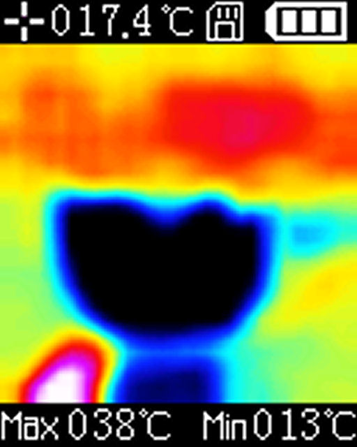 (A fenti képek a kamera előtte-utána hőképeit mutatja.)