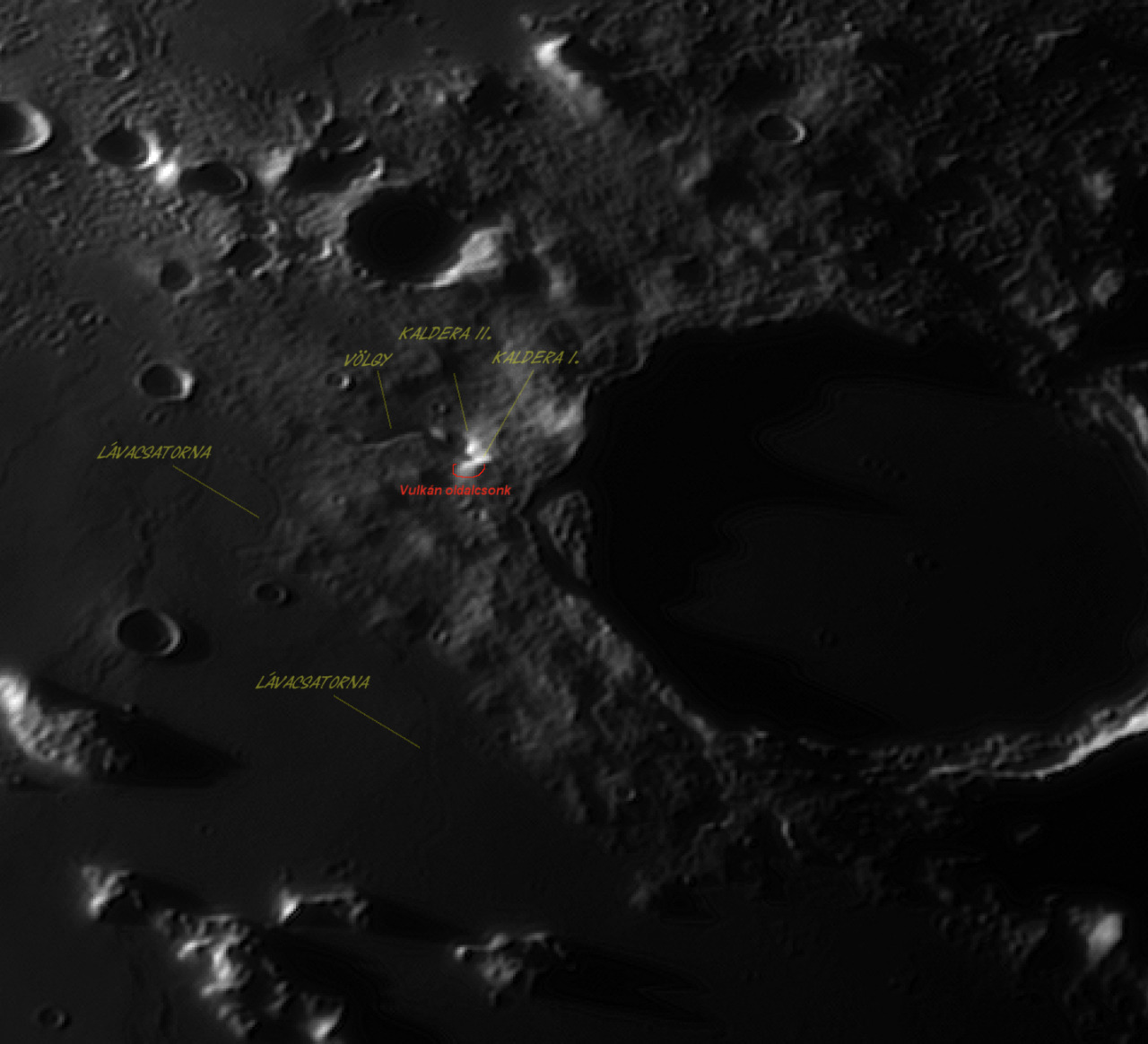 A szemfüles olvasó ilyenkor felhúzza a szemöldökét,hogyan lenne egy csontszáraz környezetben víz? Nos a válasz az hogy a Holdunk 3,5 milliárd éves korában rendelkezett valamennyi víztartalékkal (ennek mennyisége vita tárgya) amelyet a Hold akkor még létező mágneses tere és 1/100-1/50 atm.nyomású légköre rövid időre (néhány millió év, extrém esetben 100 millió év) megvédhette.A Hold ősi vízkészletéről több tanulmány született egyes kutatók szerint a teljes Holdfelszínt 3mm réteggel lehetne befedni.Ez így nem tűnik soknak (114km3/114milliárd tonna víz,a Balaton 1,9km3,a Fertő-tó 0,325km3)de ha azt vesszük alapul hogy a vulkánkitörések által lokálisan nagy mennyiségben törhetett fel gőzök formájában,esetleg iszapfortyogók, fumarolák is lehettek, akkor ez nagy mennyiségnek számít.Visszakanyarodva a csatornához és a kalderákhoz egy legalább 10%-os (igazából jobb lenne egy nagyobb akár 40%-os) víz tömegszázalékú iszapár már megfelelő lenne a magyarázathoz.A vulkán oldalának a lecsúszása is jól magyarázható a savas vizes oldatok gyengítő hatásával (Földünkön volt is rá példa Pl.:St.Helens).A felforrt "talajvíz" pedig megbontja a szilárd részek tapadását és sár keletkezik belőle,a rengések amelyek a vulkáni aktivitást kísérik pedig tovább gyengíthetik az instabillá váló felépítményt .Az ilyen "iszapláva" képes 300km-re is elfolyni.Ha elveszíti a lendületét,ha kilép a medréből(szétterül),gyorsan megszilárdul és megáll.Az Osceola iszapár a Mt.Rainier összeomlásakor a 3,8km3-nyi iszap 50km-re is eljutott és helyenként elérte a 140m mélységet! A még nagyobb mennyiségű víztartalom (több mint 20%) sajnos nehezen magyarázható.Földünkön az ilyen eseteket a csúcs hó olvadása vagy heves esőzések,krátertavak váltják ki ami még a legjobb opciójú ősi Hold körülményei közt sem fordulhat elő.A csatorna finomtörmelékes "hordaléktakarója" biztosnak látszik,de a másik lényeges összetevője még kérdéses azt majd a helyszínen kell megvizsgálni.A csatorna életkora 3,5milliárd év ami egyezik a jósolt ősi Holdlégkör kialakulásának maximumával.A nagy csatornában későbbi vulkanikus tevékenység által már a hordalékos fenéken új szerényebb lávacsatornát vágott az olvadék.
