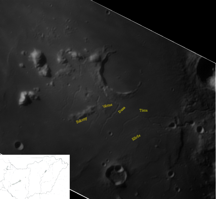 Egy régi vágyam teljesült hogy le tudtam normálisan fotózni a Prinz krátert és környékét.A Holdbéli Magyarország az egyik legfelemelőbb térség számomra.Fentről látom kis hazánkat, még ha nem is pontos a látott kép.Ide akár Radnóti versét is idézhetném.De nézzük mit is látunk a felszínen!